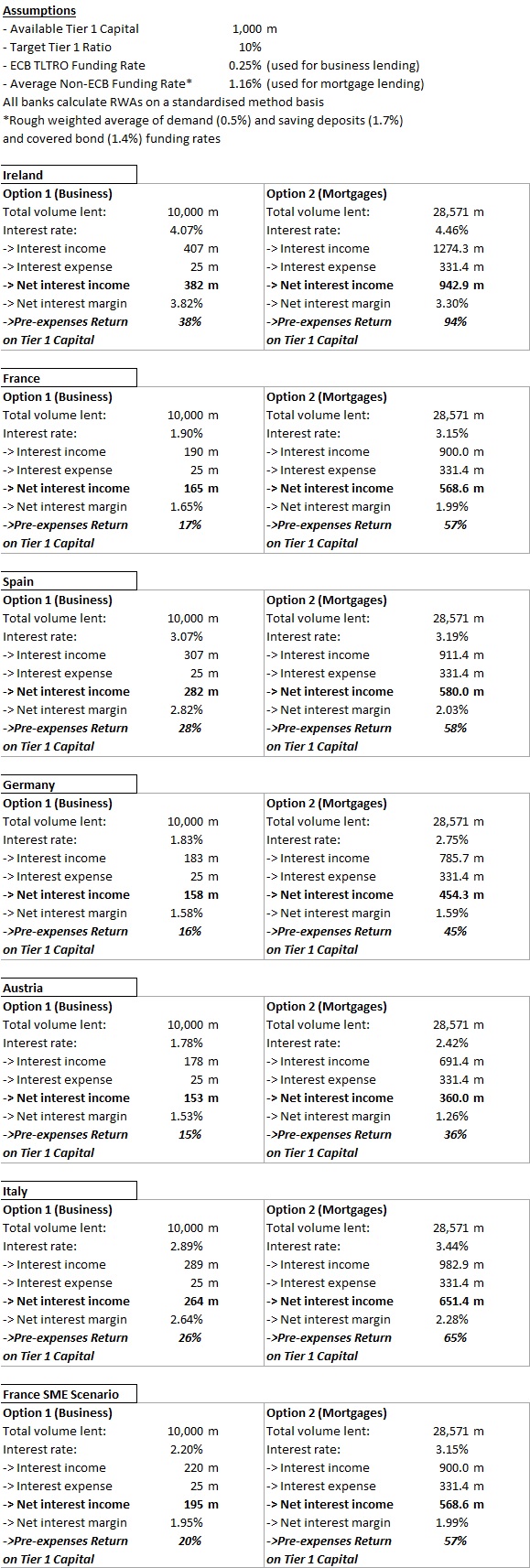 Despite the cheap ECB loans, and given a fixed amount of capital, banks are way more profitable raising funding from traditional sources to lend to households for house purchase purposes…