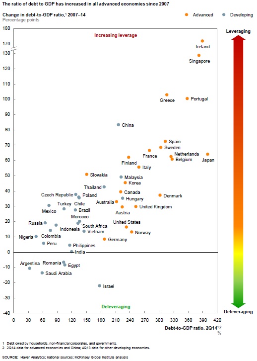 As the following chart shows, the vast majority of countries saw their overall level of debt increase:
